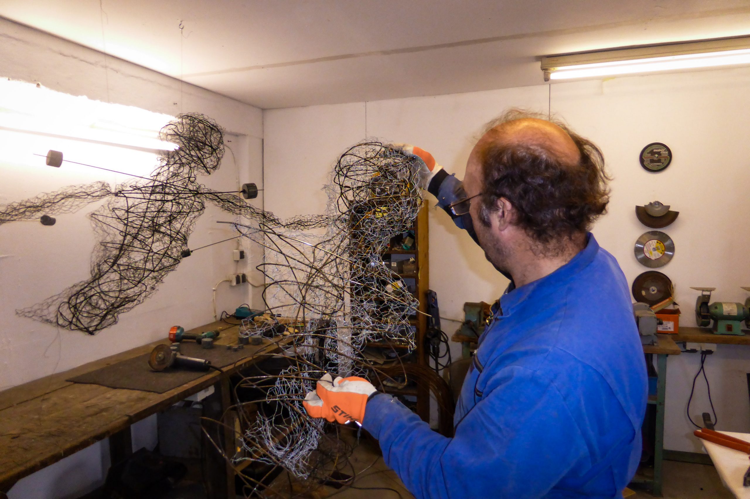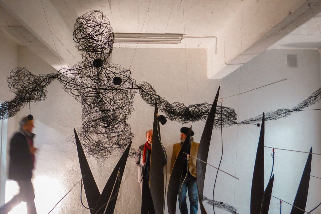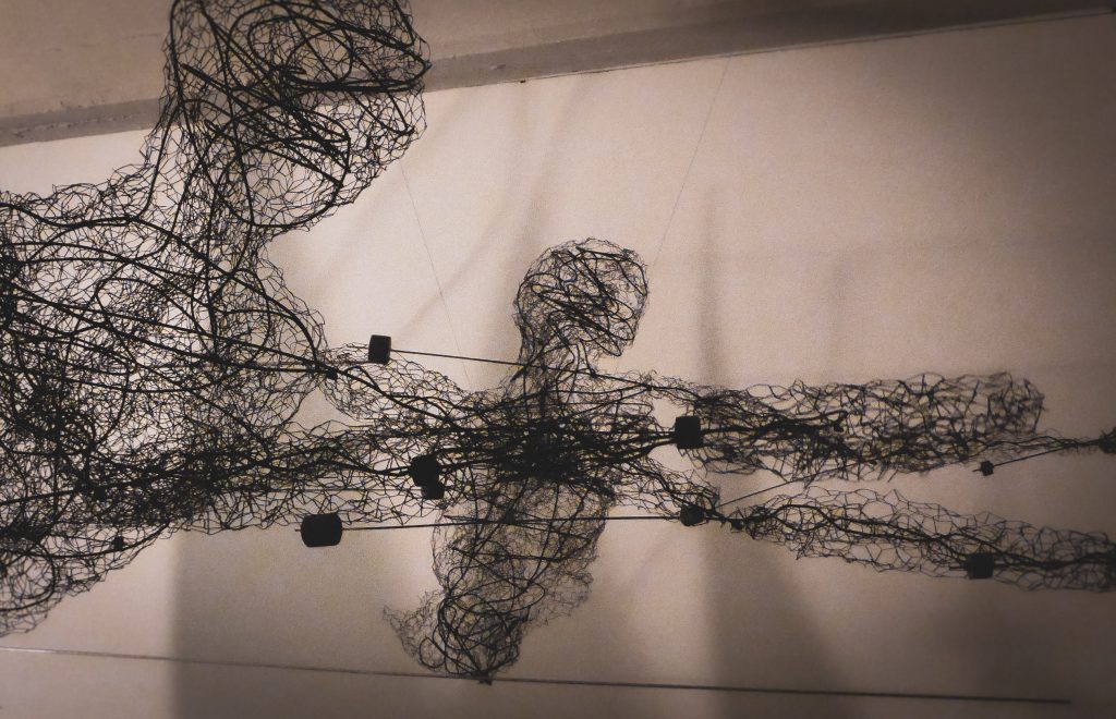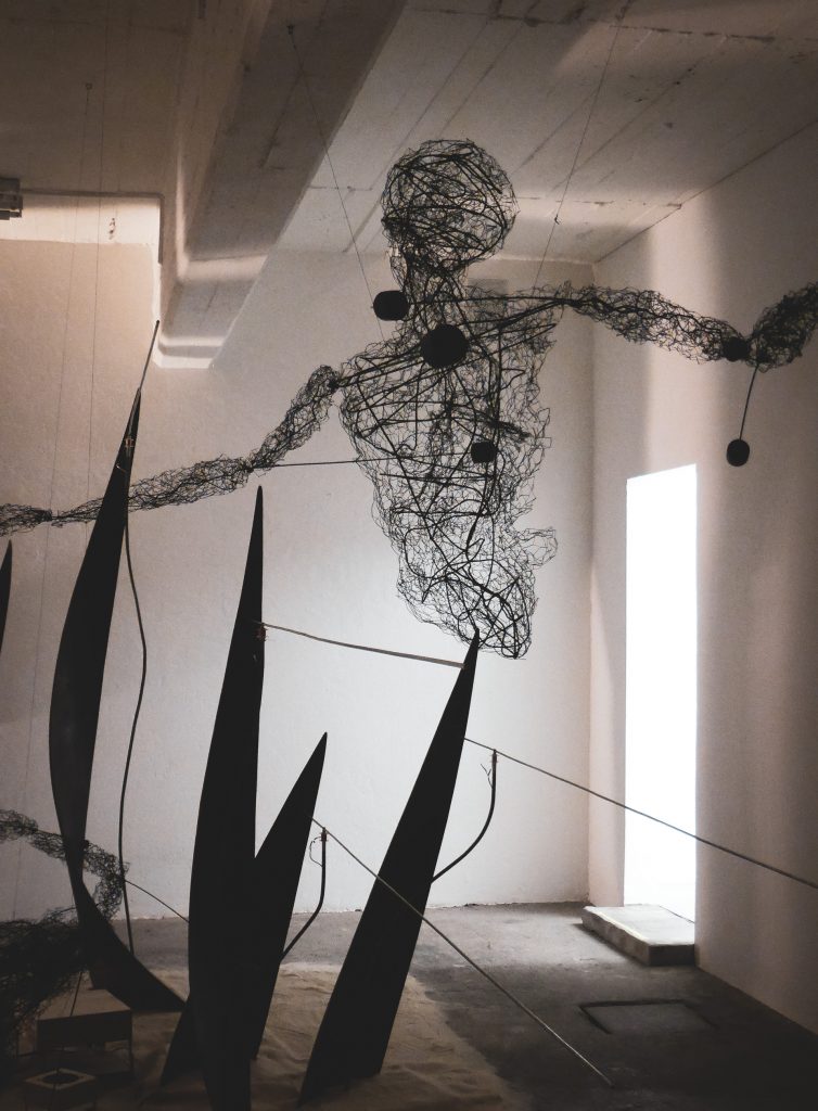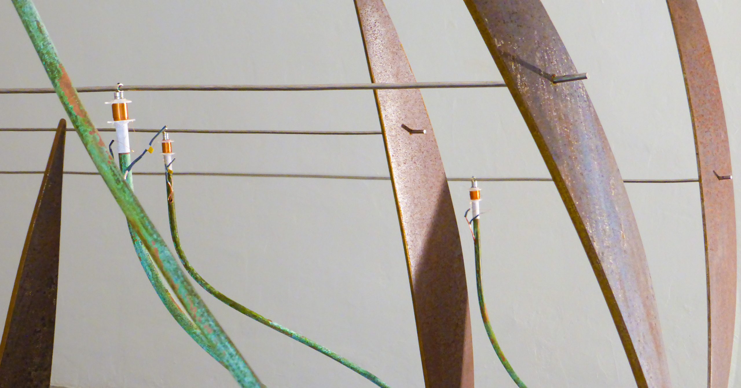 Ein Wald aus Stahlelementen und horizontal schwebenden Stäben. Hindurch bewegen sich scheinbar schwerelos, transparente, schemenhafte Figuren aus Draht. Eine Komposition aus Geräuschen, sphärischen Klängen, von einem sehr ruhigen Herzschlag untermalt, versetzt die Stäbe in schwingende Bewegung. Die Geräusche suggerieren Ereignisse, teils ruhige Alltagssituationen, teils bedrohlich verstörende Momente. Der Herzschlag jedoch bleibt ruhig und verweigert sich der Angst vor dem Unbekannten.